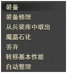 由于前期升级很快,玩家们会积累下很多装备,虽然这时武器库的容量为每个部位25个位置,但积少成多也会变得越来越少,那该怎么处理这些不用的装备呢?有三个办法,一是丢弃,二是出售,三是,魔晶石化。前面两个想必一看就明白了,至于第三个到底是怎么来的,本文就是要详细说明下魔晶石系统(如果你是个爱打扮自己角色的玩家,建议你不要把稀有装备给魔晶石化,留着以后投影用更好)。关于魔晶石的具体效果可浏览电子攻略书中的「全魔晶石一览」。